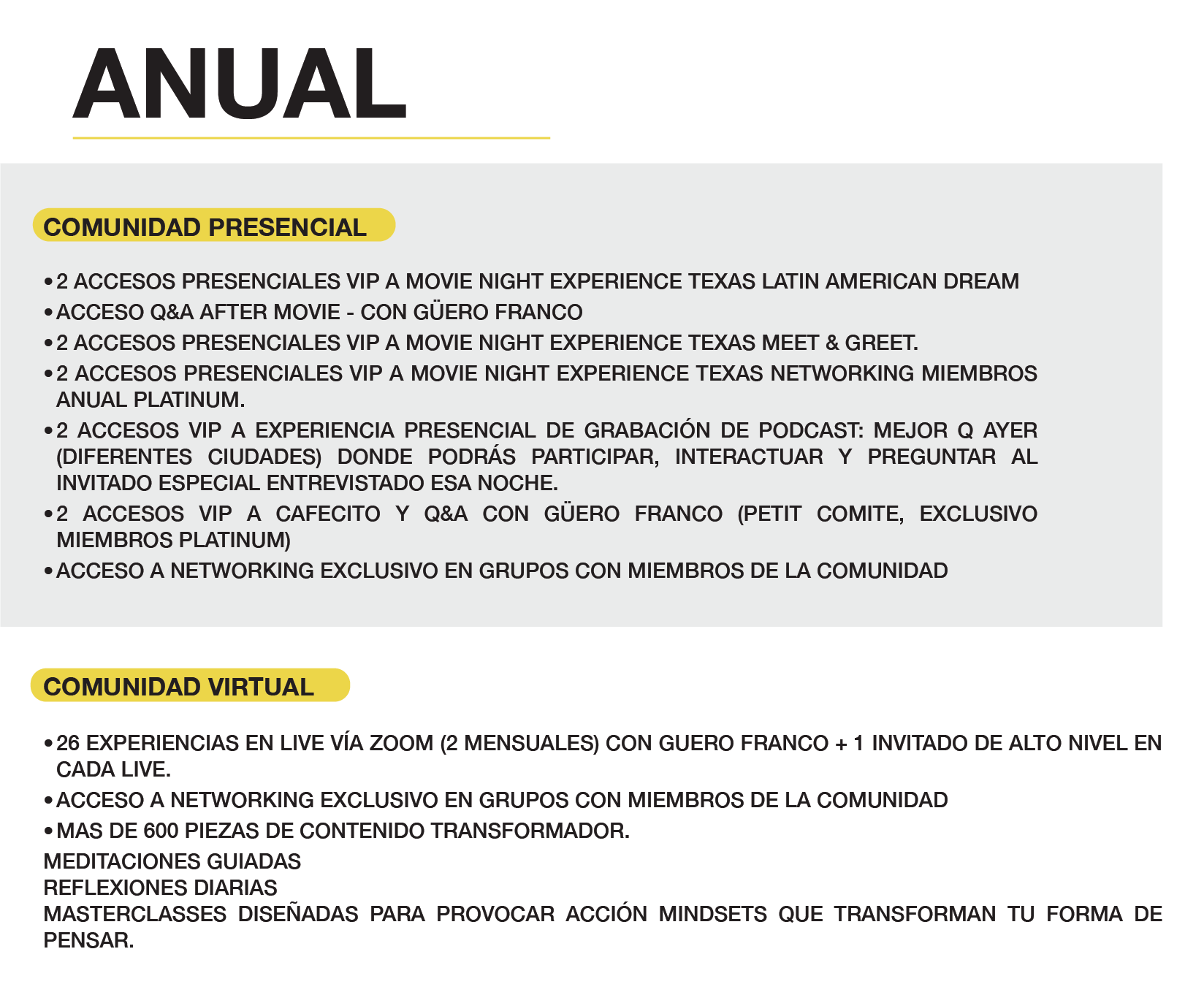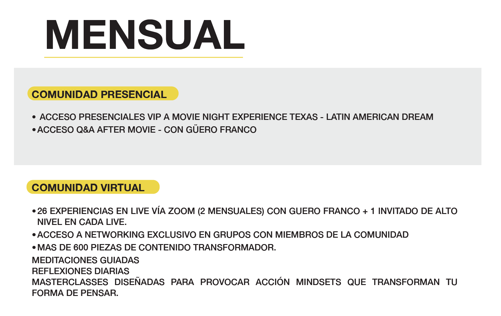 EL ACCESO SE ACTIVA AL FORMAR PARTE DE LA COMUNIDAD MEJOR Q AYER. ENVÍANOS UN CORREO A: EXPERIENCE@MEJORQAYER.COM Y TE ENVIAREMOS TUS ACCESOS.