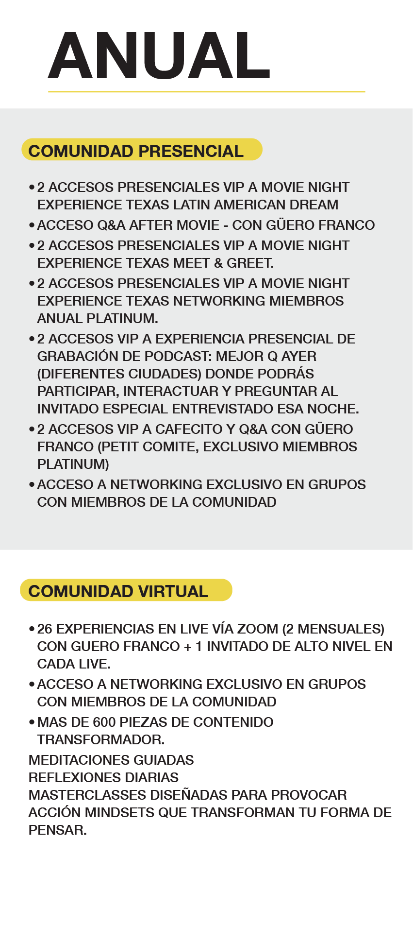 BENEFICIOS EXCLUSIVOS DE ANUAL PLATINUM