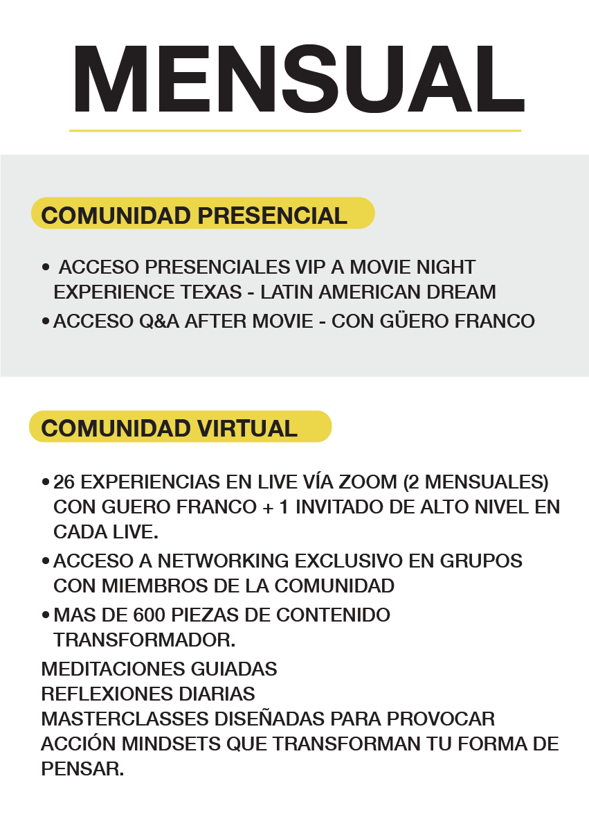 EL ACCESO SE ACTIVA AL FORMAR PARTE DE LA COMUNIDAD MEJOR Q AYER. ENVÍANOS UN CORREO A: EXPERIENCE@MEJORQAYER.COM Y TE ENVIAREMOS TUS ACCESOS.